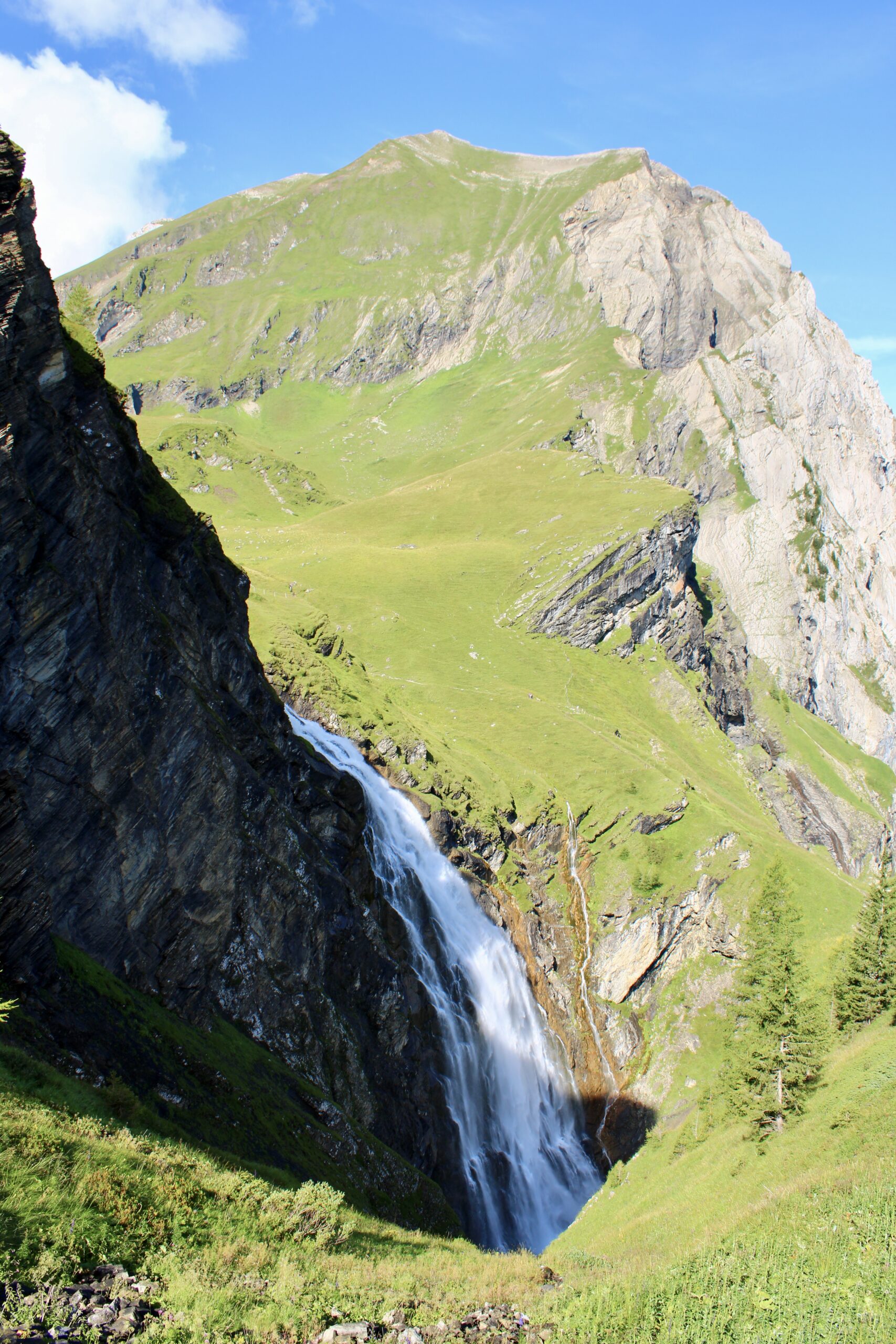 Lors de la descente, ne manquez pas, sur votre droite, un petit sentier permettant d’observer les Engstligenfall depuis le haut. Poursuivez ensuite la descente jusqu’au pied de la cascade, où vous traverserez un petit pont pour retrouver l’intersection empruntée lors de la montée.