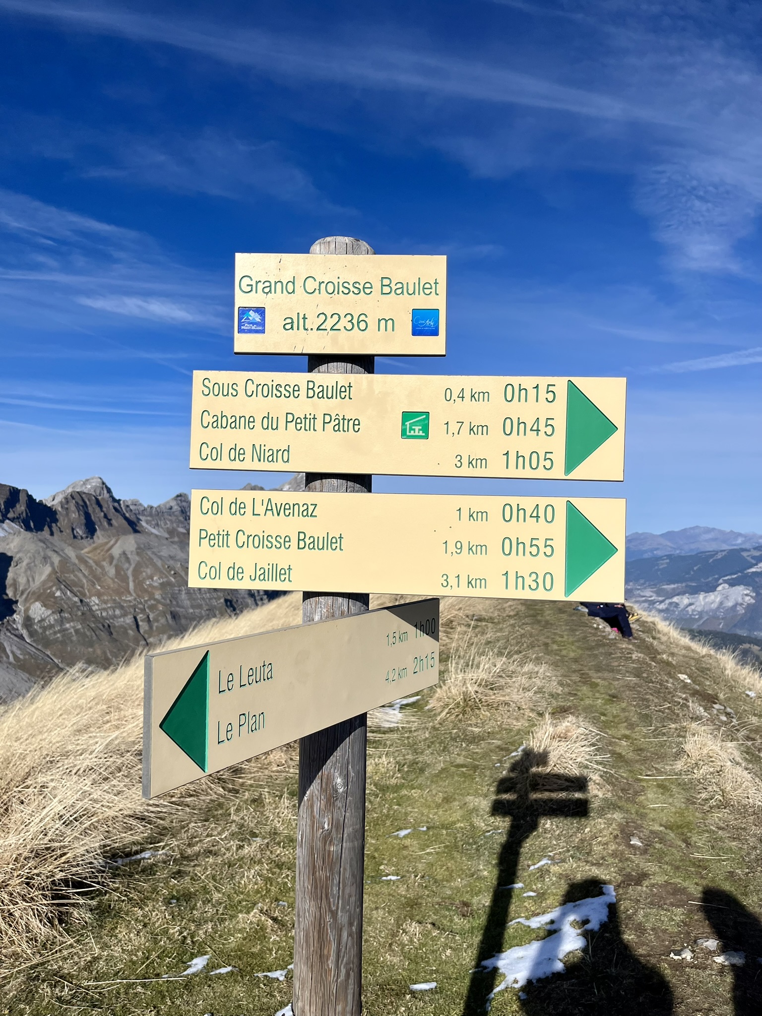 Depuis le col de Niard, dirigez-vous vers la cabane du Petit Pâtre. À hauteur de la cabane, prenez à droite afin de poursuivre l’ascension jusqu’au sommet du Grand Croisse Baulet, où vous serez face au Mont-Blanc.