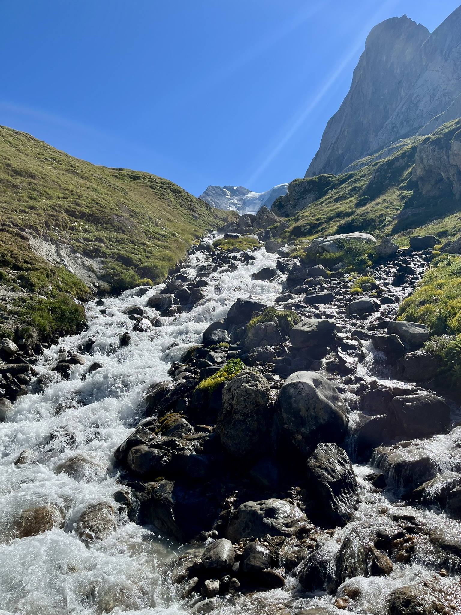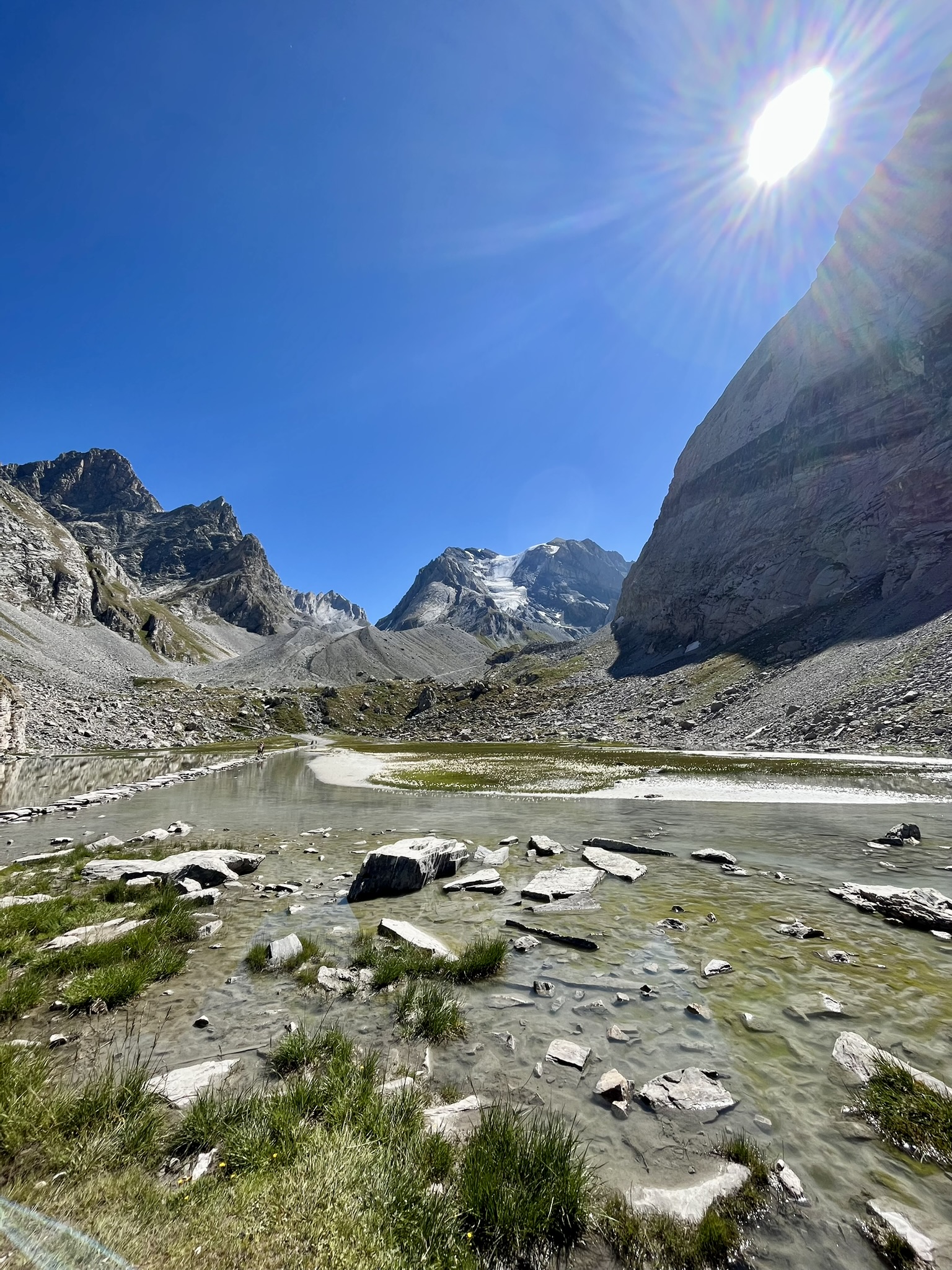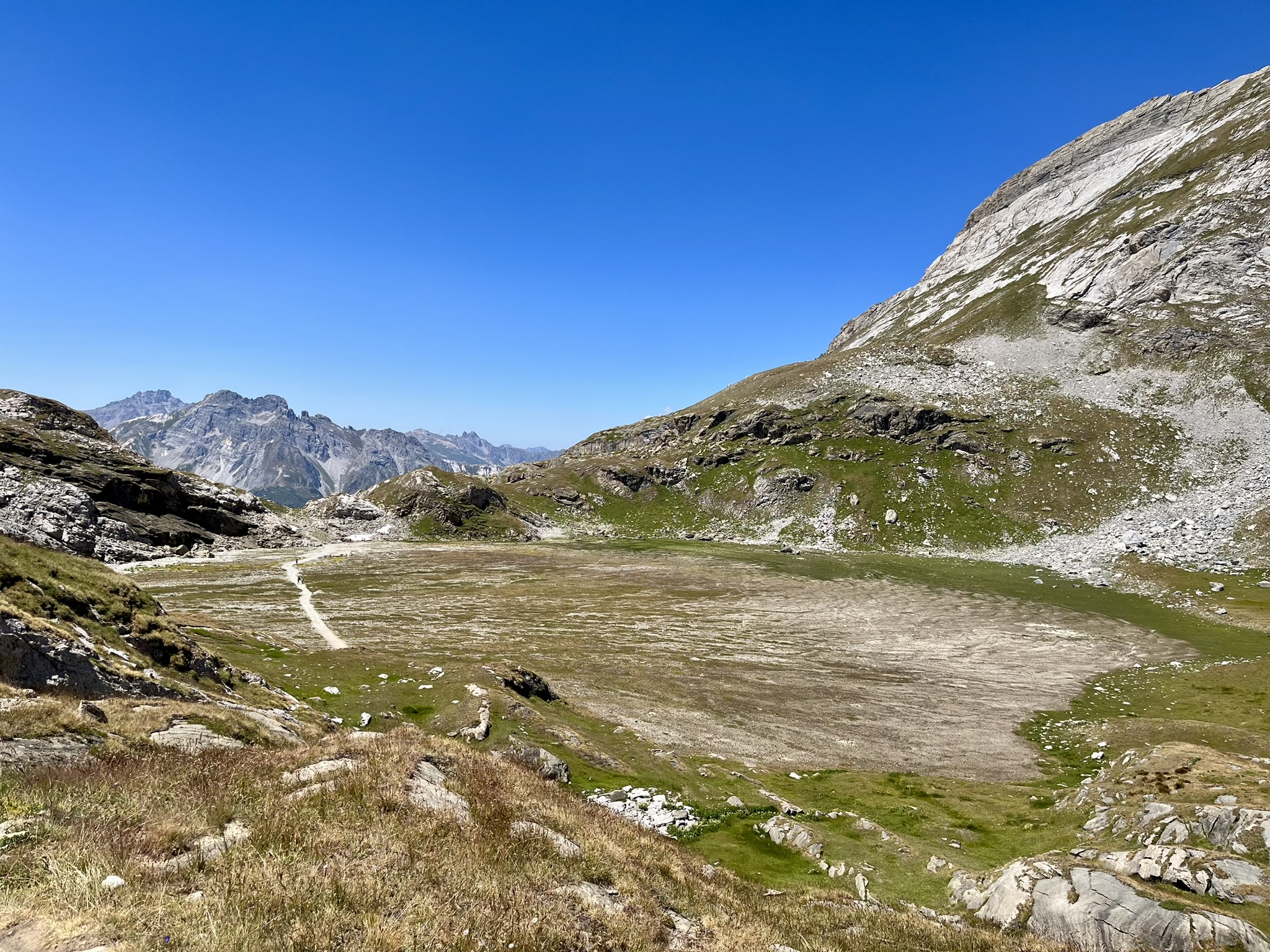 Après une pause au refuge, et avant de redescendre vers Pralognan par le lac des Assiettes (généralement asséché), vous pouvez effectuer un petit détour vers le lac Rond, situé à quelques centaines de mètres après le refuge du col de la Vanoise.