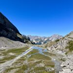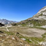 Entamez ensuite la descente en suivant le balisage en direction du lac des Assiettes, puis poursuivez sur le chemin principal en direction de Pralognan – Les Fontanettes.