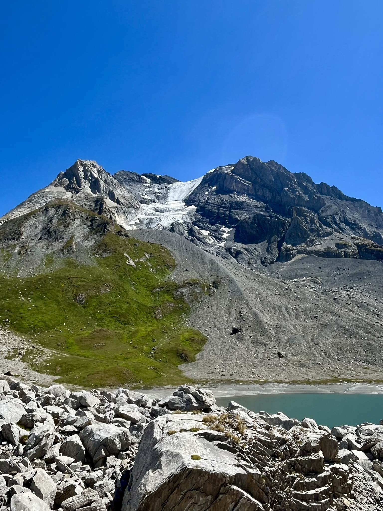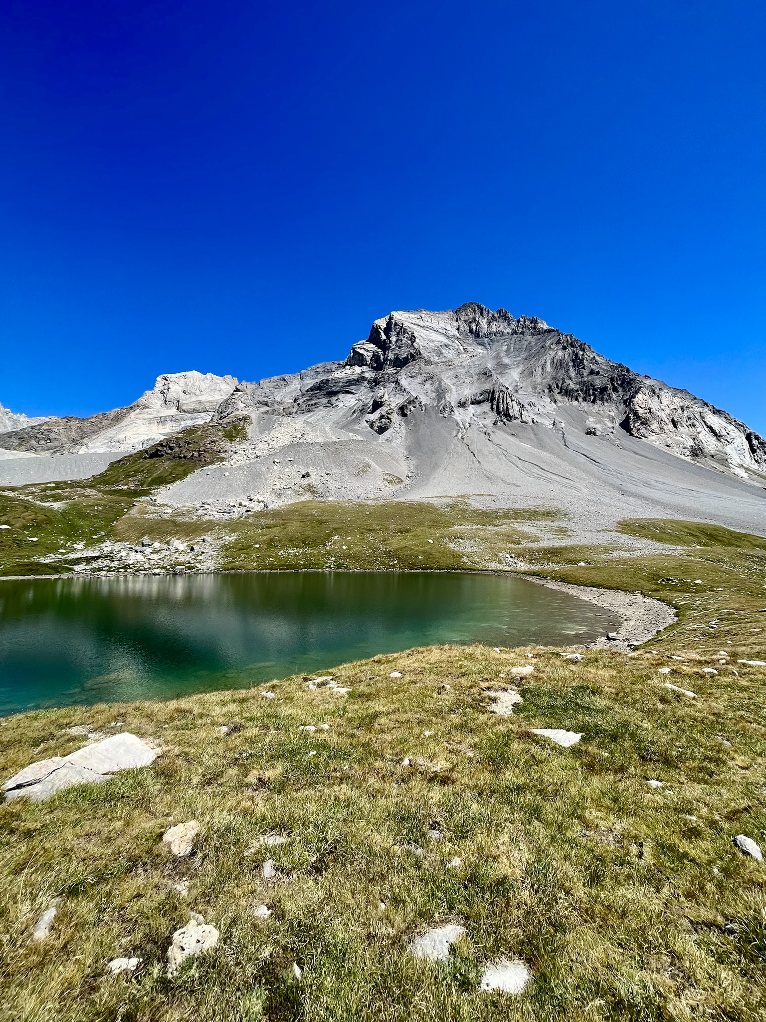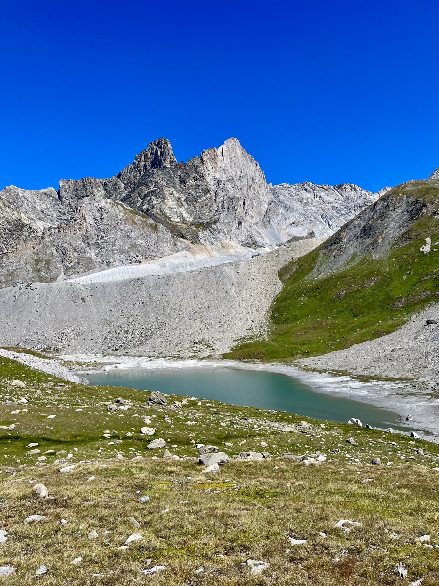 Une fois le lac franchi, il vous restera la dernière partie de la montée, plus raide, pour rejoindre le lac Long. Ce dernier est dominé par la Grande Casse, point culminant du massif de la Vanoise avec ses 3 855 m d’altitude.