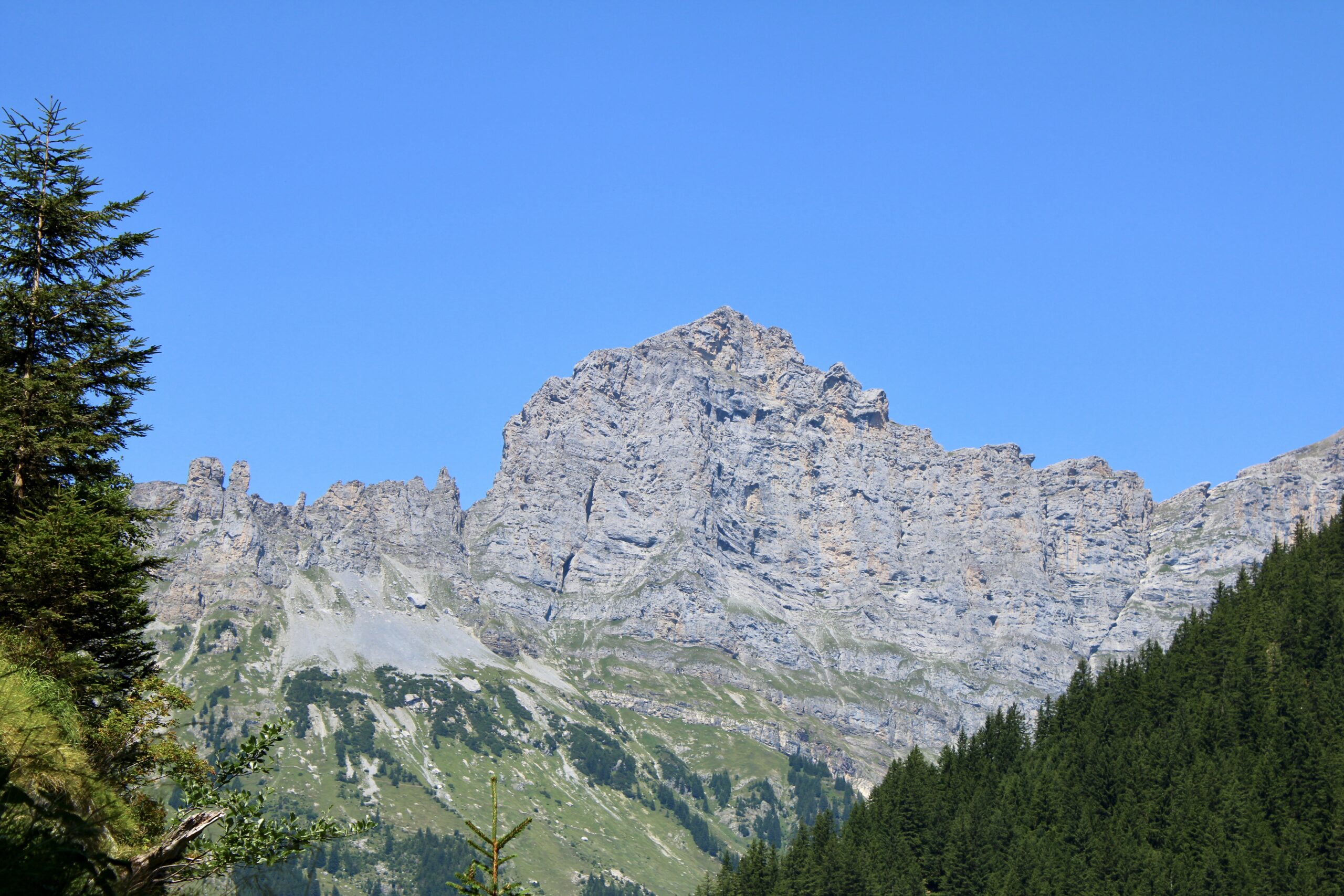 L’aller-retour jusqu’à la passerelle s’effectue en empruntant le sentier situé sur la rive ouest du cours d’eau du Trift.
