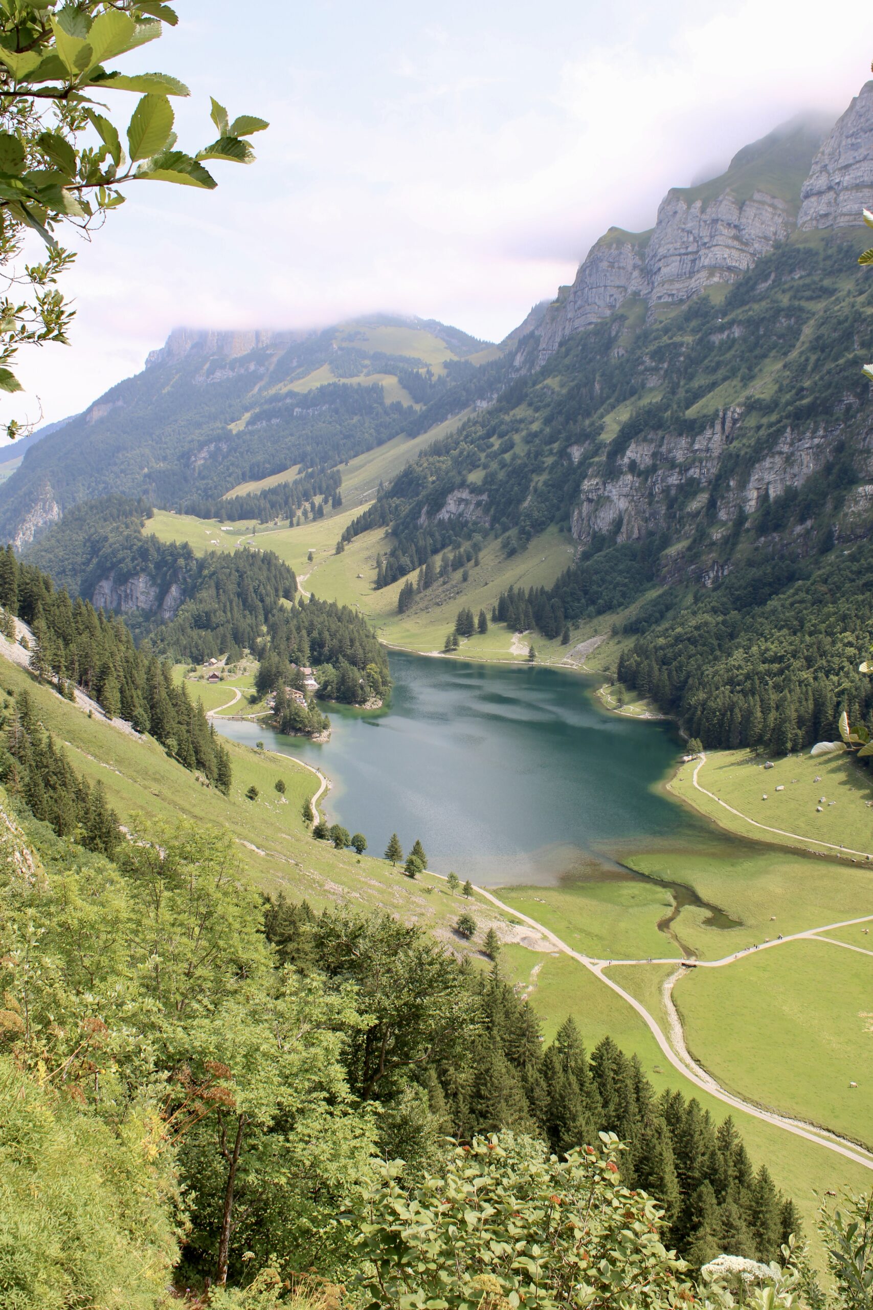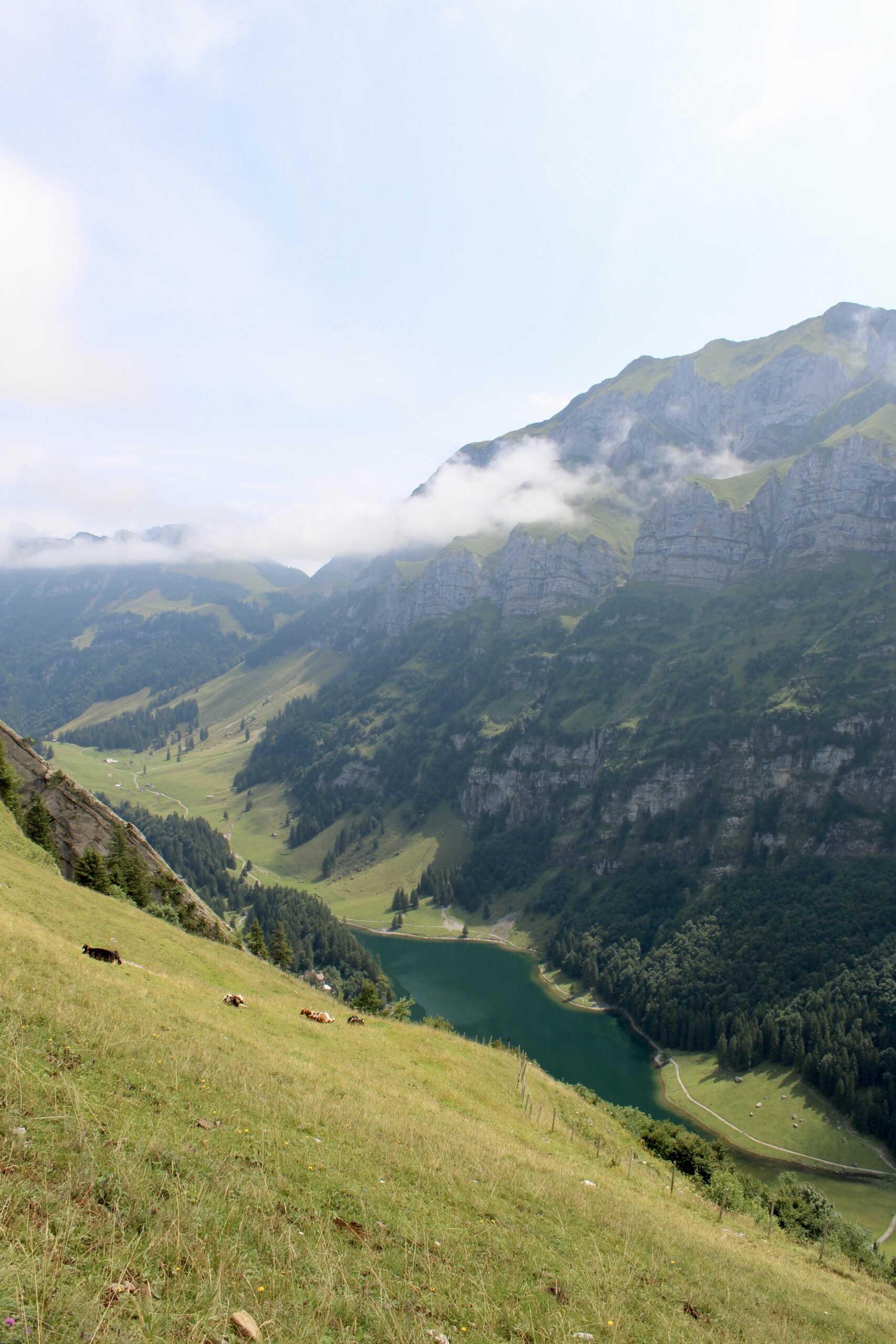 Quelques mètres avant l’Altenalp, prenez un sentier sur la gauche pour entamer la descente vers le lac de Seealpsee. Attention, lors de la descente, plusieurs passages sont équipés de câbles et peuvent être délicats par temps pluvieux.
